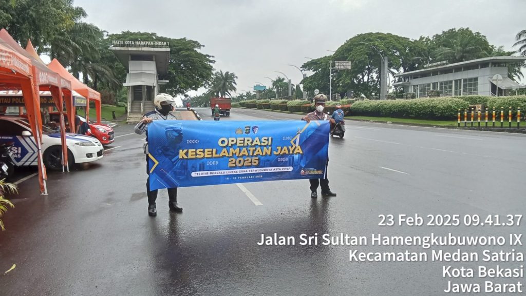 GANTARITV.COM Bekasi, 23 Februari 2025 – Polsek Medan Satria, Polres Metro Bekasi Kota, menggelar operasi keselamatan jaya 2025 di TL Harapan Indah, Jl Raya Sultan Agung, Medan Satria. Kegiatan ini berlangsung pada Minggu, 23 Februari 2025, pukul 10.00 WIB.