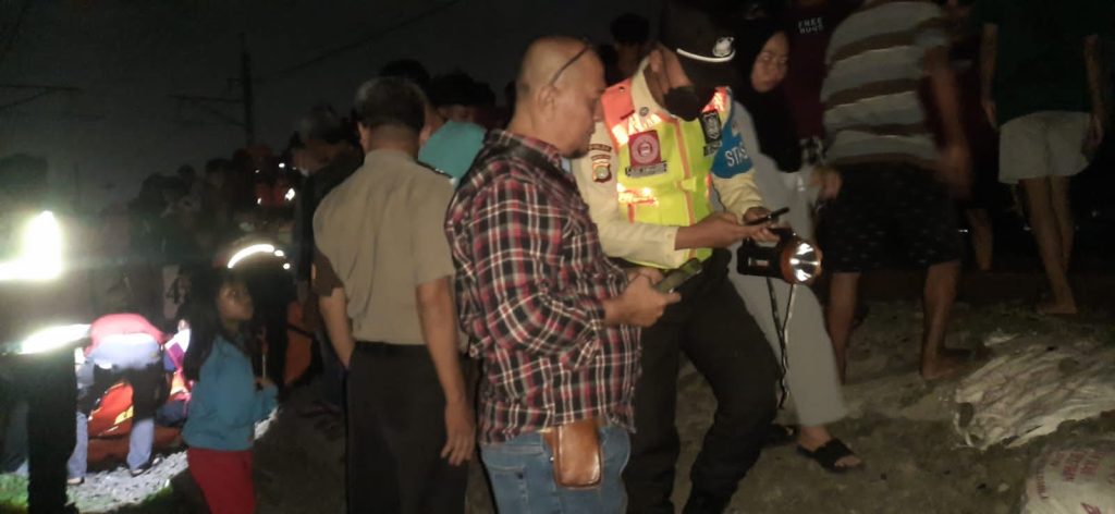 Polsek Rawa Lumbu Evakuasi Korban Tertabrak Kereta Api di Duren Jaya