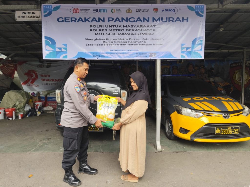 Kota Bekasi, – Polsek Rawalumbu menggelar Gerakan Pangan Murah di halaman Polsek Rawalumbu, Jalan Siliwangi Km. 5, Kelurahan Bojong Rawalumbu, Kecamatan Rawalumbu, Kota Bekasi, pada Minggu (24/8) mulai pukul 08.30 WIB hingga sore hari.