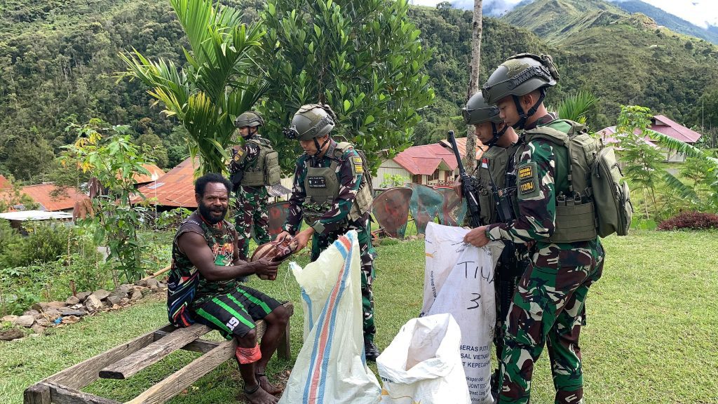GANTARITV.COM Puncak Jaya – Prajurit Satgas Yonif 112/DJ Pos Tinggi Nambut melaksanakan Pembinaan Teritorial (Binter) dan pendekatan disekitar Pos dengan membagikan sarana penggalangan berupa pakaian layak pakai kepada masyarakat binaan guna menjalin hubungan yang baik dan sarana kontak untuk mengambil hati masyarakat yang bertempat di Kampung Pagargom, Distrik Tinggi Nambut , Kabupaten Puncak Jaya, Provinsi Papua Tengah, Jum’at (14/3/2025).