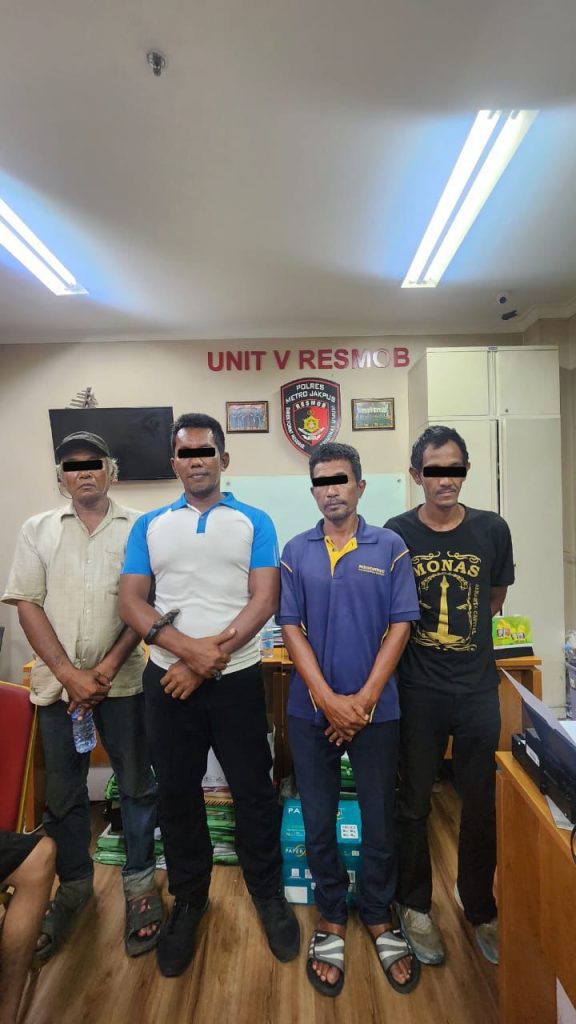 Jakarta Pusat — Aksi premanisme kembali meresahkan warga Jakarta. Empat pria berinisial T (45), F (52), I (41), dan H (51) ditangkap Unit Resmob Satreskrim Polres Metro Jakarta Pusat setelah memaksa warga membayar parkir ilegal sebesar Rp 20.000 di Jalan Medan Merdeka Barat, Gambir, Jakarta Pusat, Sabtu (10/5/2025).