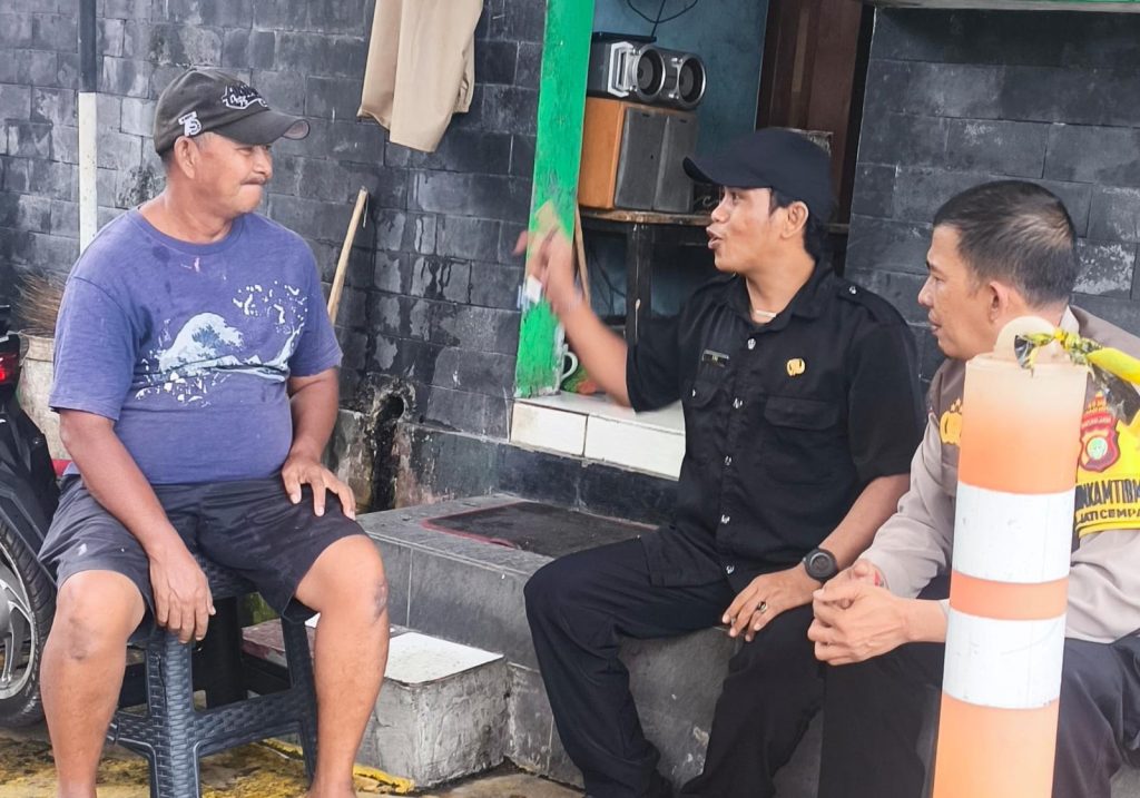 GANTARITV.COM BEKASI - Kanit Binmas Iptu Landung, Panit Binmas Iptu Endang Dahyudi, dan Bhabinkamtibmas Bripka Yophi Prima S.H. melakukan kegiatan Ngopi