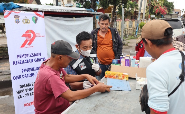BALIGE – Dalam rangka menyambut dan meriahkan Hari Ulang Tahun (HUT) Bhayangkara ke-79, Polres Toba melalui Seksi Kedokteran dan Kesehatan (Sidokkes) menggelar kegiatan pemeriksaan kesehatan serta pemberian vitamin bagi para Abang Becak Motor (Betor) dan masyarakat. Kegiatan yang berlangsung di Bundaran Balige Kabupaten Toba Provinsi Sumatera Utara, Senin (16/6/2025)