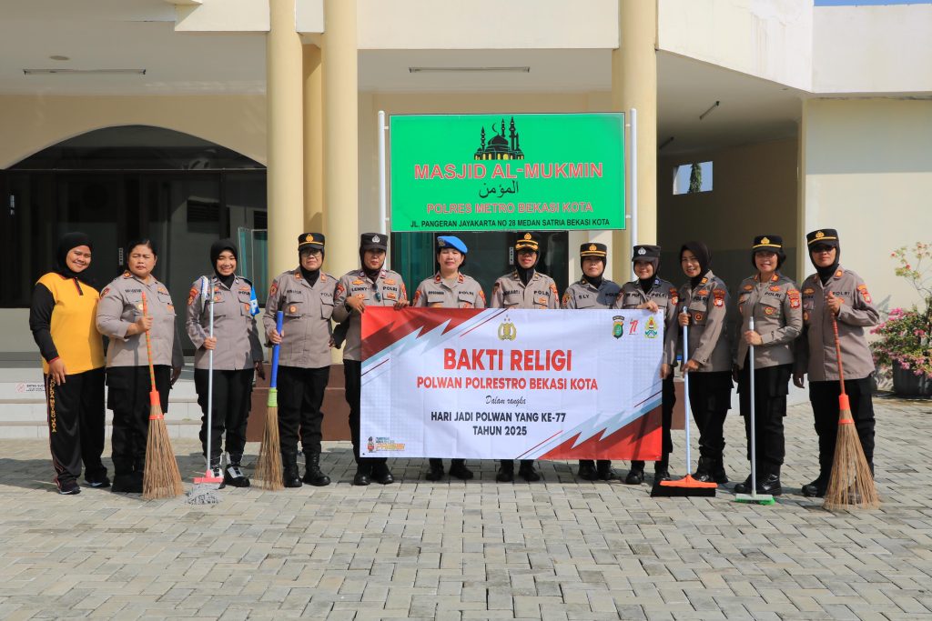 GANTARITV.COM BEKASI – Dalam rangka menyambut Hari Ulang Tahun (HUT) Polisi Wanita (Polwan) ke-77 pada 1 September 2025, Polwan Polres Metro Bekasi Kota menggelar kegiatan bakti religi berupa bersih-bersih Masjid Al-Mukmin di lingkungan Polres, Selasa (26/8/2025).