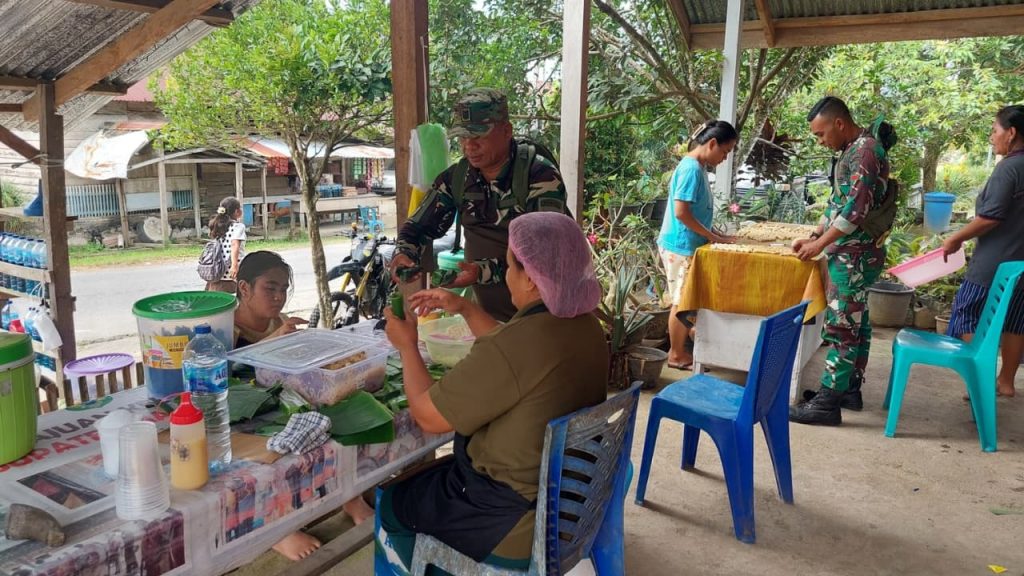 Salah satu momen kebersamaan yang mencuri perhatian adalah ketika Serma Antonius, anggota Satgas TMMD, turut membantu warga yang sedang membuat kue di rumah mereka. Kegiatan sederhana ini mencerminkan semangat gotong-royong dan kedekatan emosional antara TNI dan warga.