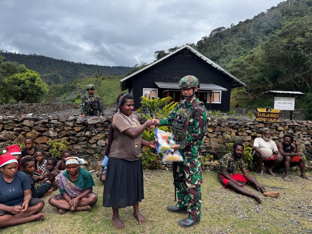 GANTARITV.COM Puncak Jaya – Pos Tinolok Satgas Pamtas Kewilayahan Yonif 715/Motuliato, membagikan sembako berupa beras kepada masyarakat sekitar Pos Tinolok di wilayah Distrik Mulia, Puncak Jaya, Papua Tengah, Jum’at (03/01/2025).