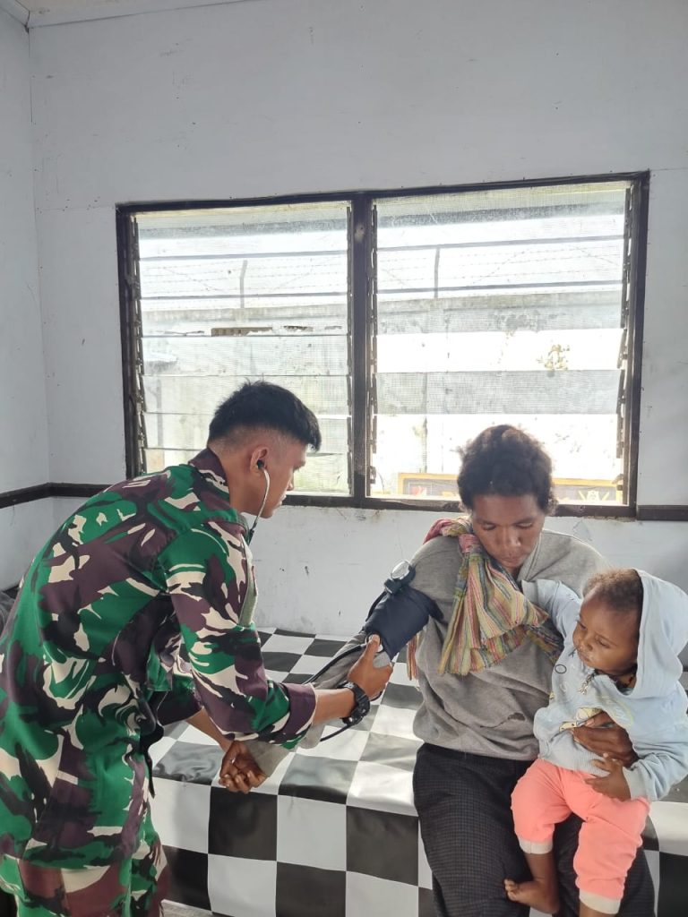 Puncak Jaya – Ditengah-tengah dinginnya suhu dan deruh angin di wilayah Pegunungan Papua sangatlah sulit bagi masyarakat untuk mendapatkan pelayanan kesehatan yang memadai. Selain akses jalan yang sulit juga jauh untuk di tempuh keterbatasan juga menjawab solusi bagi masyarakat bahwa hadirnya TNI melalui Satgas Yonif 715/Mtl sangat membantu masyarakat pegunungan dalam bidang kesehatan juga perekonomian yang dimana hadirnya TNI selalu memberikan solusi dan membantu menyelesaikan masalah dan persoalan yang ada di tengah-tengah masyarakat, Rabu (25/6/2025).