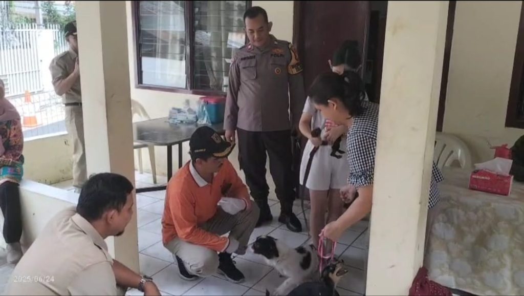 Jakarta Pusat – Dalam rangka memperingati Hari Ulang Tahun (HUT) Bhayangkara ke-79, Bhabinkamtibmas Kelurahan Menteng Aiptu Robby Danan Jaya bersinergi dengan Suku Dinas Ketahanan Pangan, Kelautan, dan Pertanian (KPKP) Kecamatan Menteng, serta menggandeng Ketua RW 06 beserta jajaran staf, melaksanakan kegiatan kemasyarakatan berupa pemberian vaksin rabies untuk hewan peliharaan warga di wilayah RW 06, tepatnya di Jalan Rembang RT 09 RW 06, Kelurahan Menteng, Jakarta Pusat. Selasa (24/6/2025)