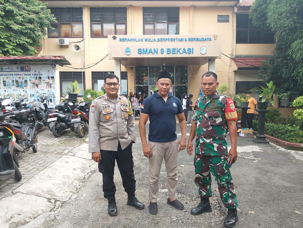 BEKASI – Dalam rangka memperkuat sinergitas dan menjaga kondusivitas wilayah, Bhabinkamtibmas Kelurahan Mustikajaya, Bripka Nurdian Syah, bersama Babinsa Kelurahan Mustikajaya, Serda Wasin, melaksanakan kegiatan monitoring di SMAN 9 Bekasi, Sabtu (10/5/2025).