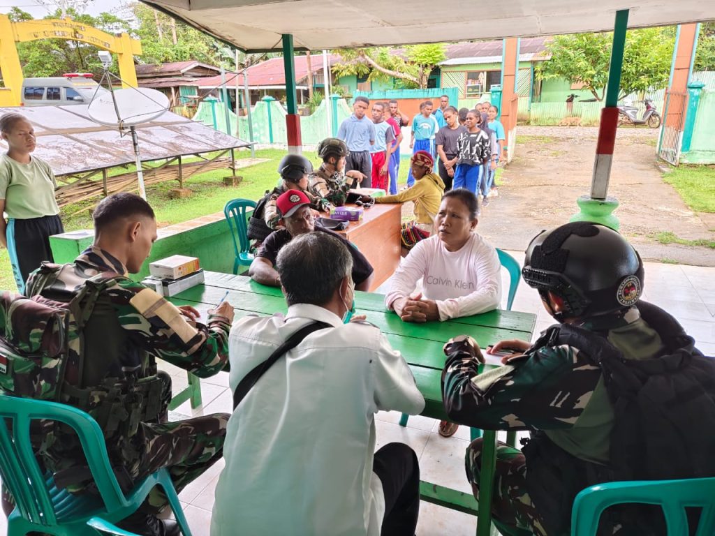 Kegiatan ini dipimpin langsung oleh dokter Satgas Yonif 126/KC, Letda Ckm dr. Riskinyamin Payungallo, dan mendapat sambutan hangat dari masyarakat. Sejak pagi hari, puluhan warga tampak antusias mengantre di halaman Koramil 1702/MT untuk mendapatkan layanan pemeriksaan dan pengobatan secara gratis.