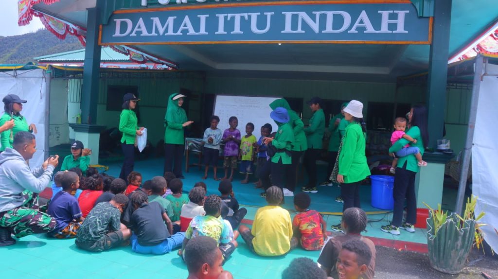 GANTARITV.COM Papua – Sebagai bentuk kepedulian Babinsa terhadap pendidikan anak- anak Babinsa mengisi waktu untuk menggantikan para guru-guru yang tidak bisa melaksanakan kegiatan proses mengajar di sekolah di karenakan situasi yang belum kondusif sehingga para Babinsa menyempatkan diri bersama Ibu-ibu Persit Kodim 1714/PJ memberikan materi bagi anak-anak SD yang sedang mengungsi bersama keluarganya di Makodim 1714/PJ, Kamis (20/02/2025).