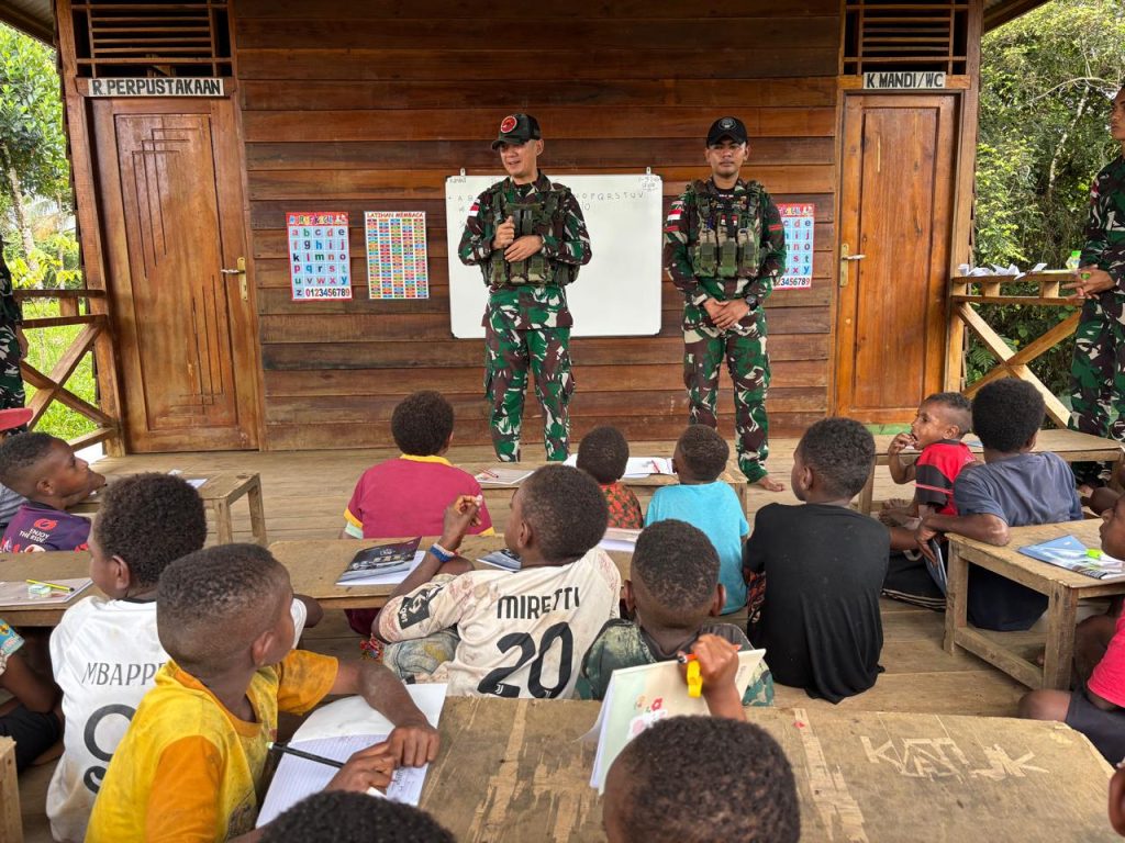 BOVEN DIGOEL – Satuan Tugas Pengamanan Perbatasan (Satgas Pamtas) Yonif 126/Kala Cakti secara aktif melaksanakan program pembelajaran baca, tulis, dan hitung (calistung) bagi siswa sekolah dasar di Kampung Kombut, Kabupaten Boven Digoel. Kegiatan ini merupakan bagian dari upaya TNI untuk mendukung pembangunan sumber daya manusia (SDM) di wilayah perbatasan.