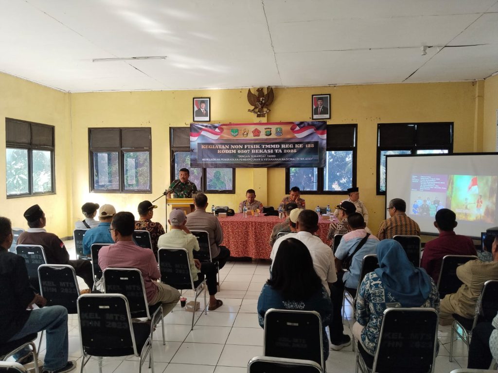 BEKASI – Kodim 0507 Kota Bekasi melaksanakan kegiatan Non Fisik dalam rangka TNI Manunggal Membangun Desa (TMMD) Reguler ke-125 Tahun Anggaran 2025. Acara yang berfokus pada pembangunan karakter dan kesadaran hukum masyarakat ini diselenggarakan di Aula Kelurahan Mustikasari, Kecamatan Mustikajaya, Kota Bekasi, pada Kamis (24/7).