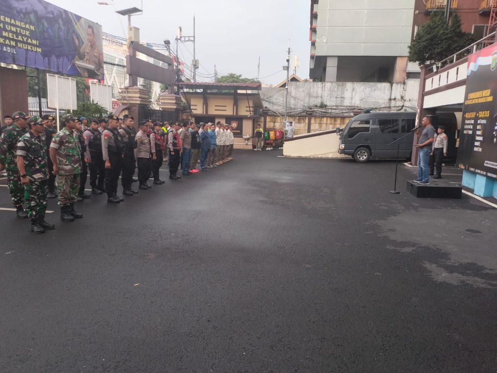 Jakarta Timur – Dalam rangka menjaga ketertiban umum dan kenyamanan lingkungan, TNI-Polri bersama instansi terkait menggelar apel gabungan di halaman Mapolres Metro Jakarta Timur, Jalan Matraman Raya, Kelurahan Balimester, Kecamatan Jatinegara, Minggu (11/5). Kegiatan ini menjadi awal pelaksanaan penertiban atribut organisasi kemasyarakatan (ormas) seperti spanduk dan bendera yang tidak sesuai ketentuan di wilayah Kota Administrasi Jakarta Timur.