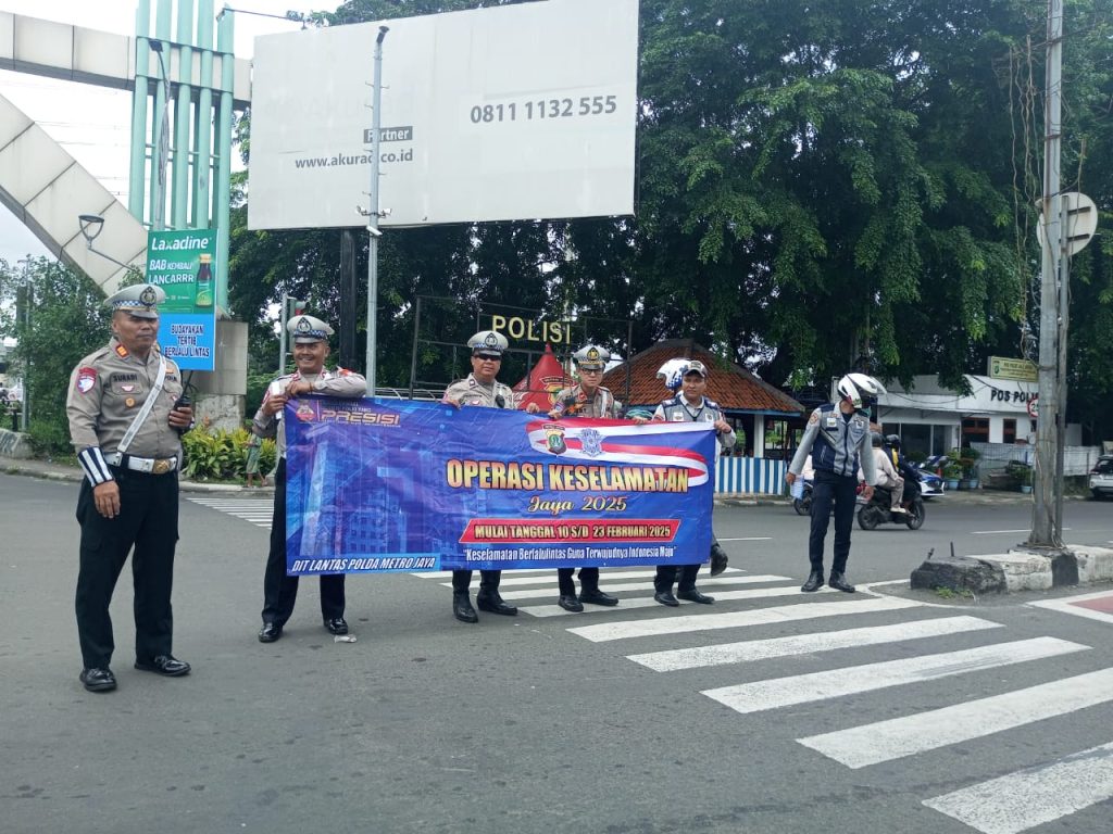 Pemasangan spanduk dan pembagian brosur serta stiker terkait Operasi Keselamatan Jaya 2025.
