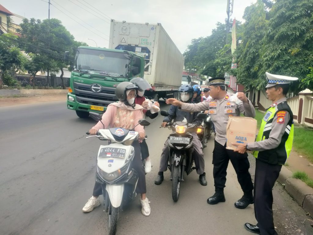Sebanyak 100 bungkus takjil dibagikan kepada pengguna jalan yang melintas di Jalan Siliwangi Km.10, tepat di depan Polsek Bantar Gebang, Kelurahan/Kecamatan Bantar Gebang, Kota Bekasi. Pembagian takjil ini bertujuan untuk membantu masyarakat yang masih berada di perjalanan menjelang waktu berbuka puasa.