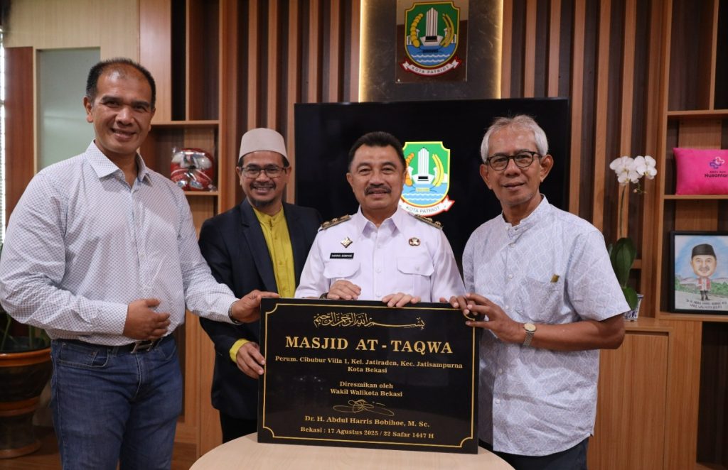 KOTA BEKASI – Wakil Wali Kota Bekasi Abdul Harris Bobihoe tandatangani prasasti Masjid AT Taqwa Perum Cibubur, Jati raden, Jatisampurna.